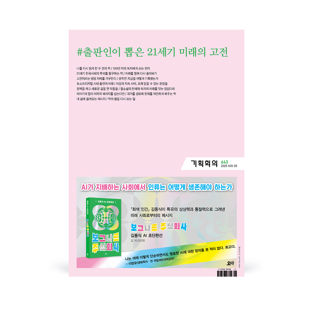 <기획회의> 643호(2025.11.05.) 이슈 “출판인이 뽑은 21세기 미래의 고전”